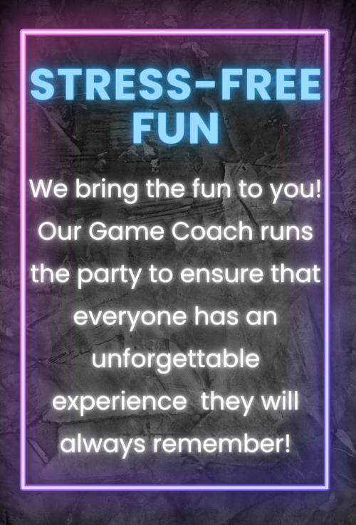 ✔️ Our trained Game Coach will assist with the party to ensure a memorable experience. Of course you are most welcome to play and join in the fun!