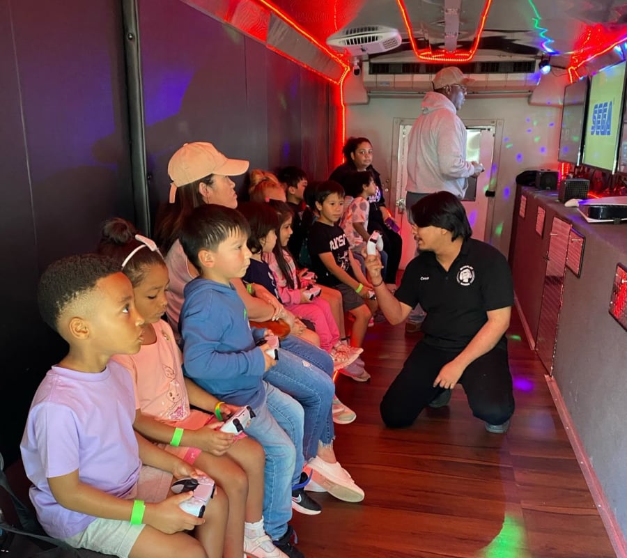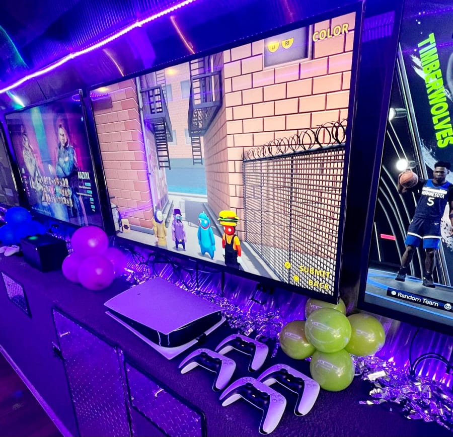 Mobiplay Games will make your birthday party extra special! The birthday boy or girl will be thrilled beyond compare when our 30’ Mobile Game Bus rolls up to your residence! We provide comfortable seating for a crowd with high tech video audio and amazing lighting. The best part is up to 17 kids can simultaneously play games on our 5 game stations inside, while another 8 can play outside! (weather permitting). Enjoy two hours of non stop gaming fun with free access to our full video game library! Recommended for ages 6 and up.